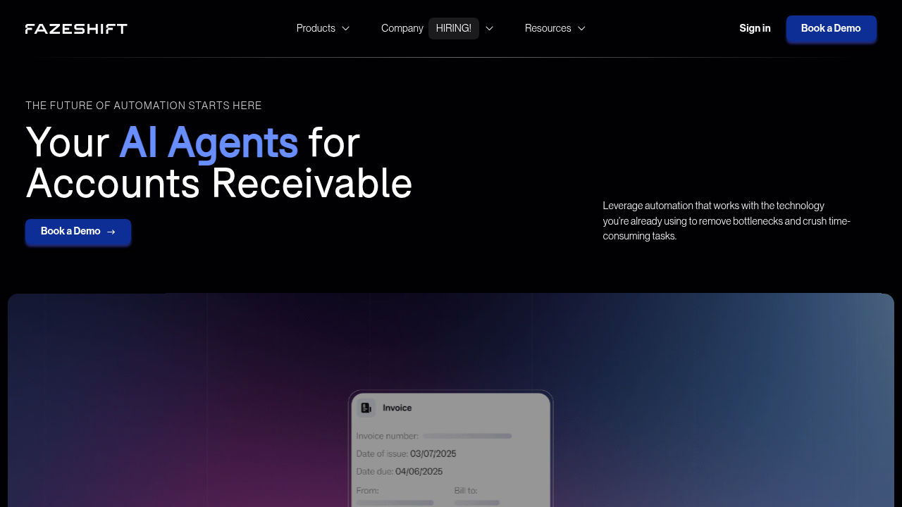 Fazeshift is an early-stage AI agent for AR automation that uses workflows and state-based escalations. Founded in 2023, the company provides end-to-end AR process automation using AI to handle invoicing, cash application, and collections.